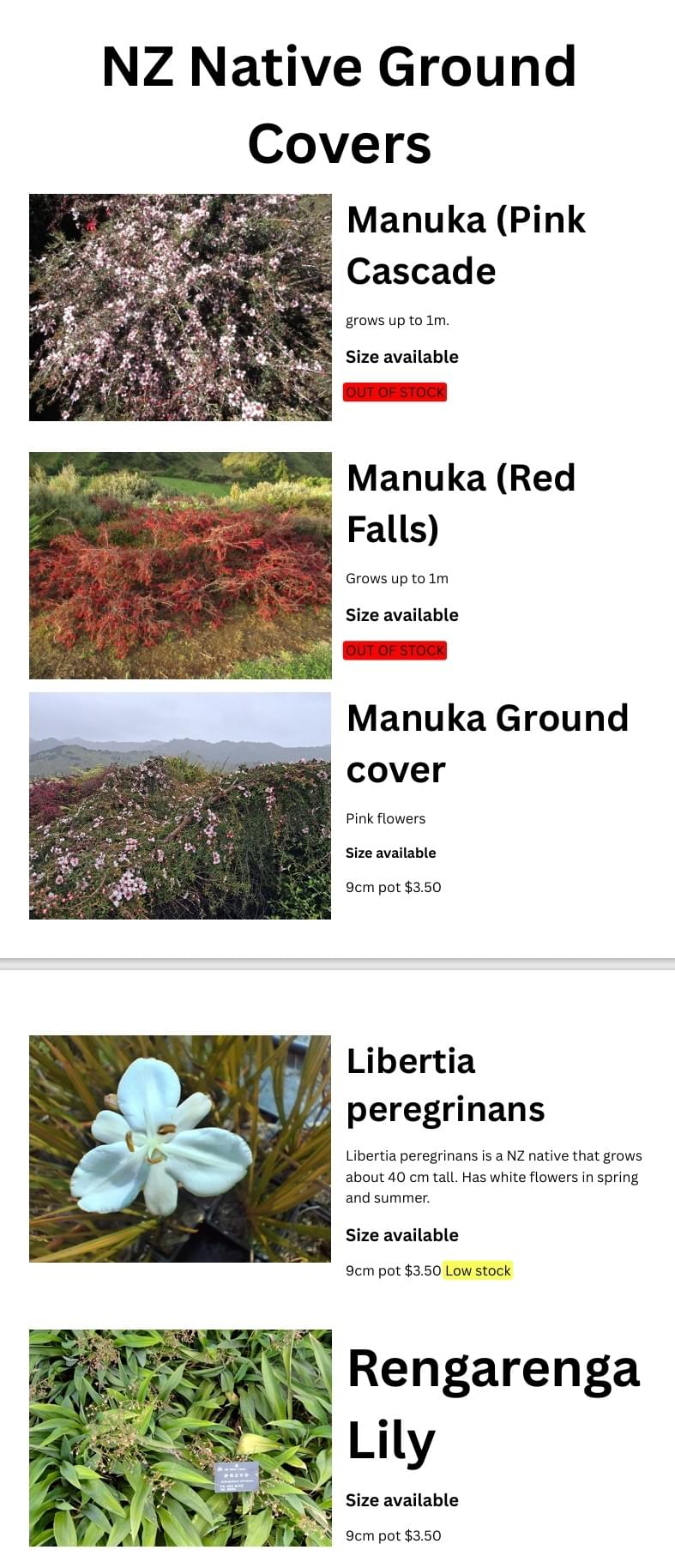 To Make an order Please email us at tainuinursery@outlook.co.nz